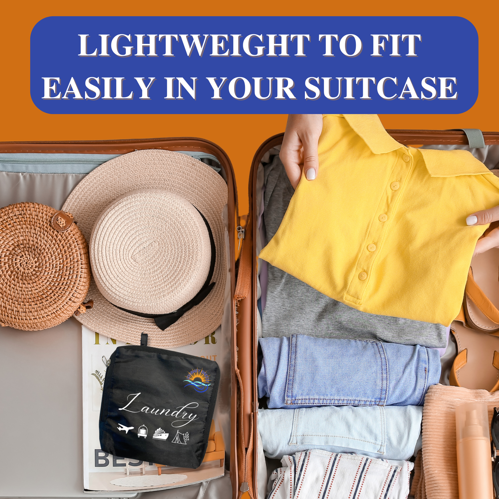 - Durable Laundry Bag: The foldable laundry bag travel companion is crafted for durability, accommodating heavy loads. This laundry bag ensures your travel detergent and dirty clothes travel bag are securely stowed during trips.