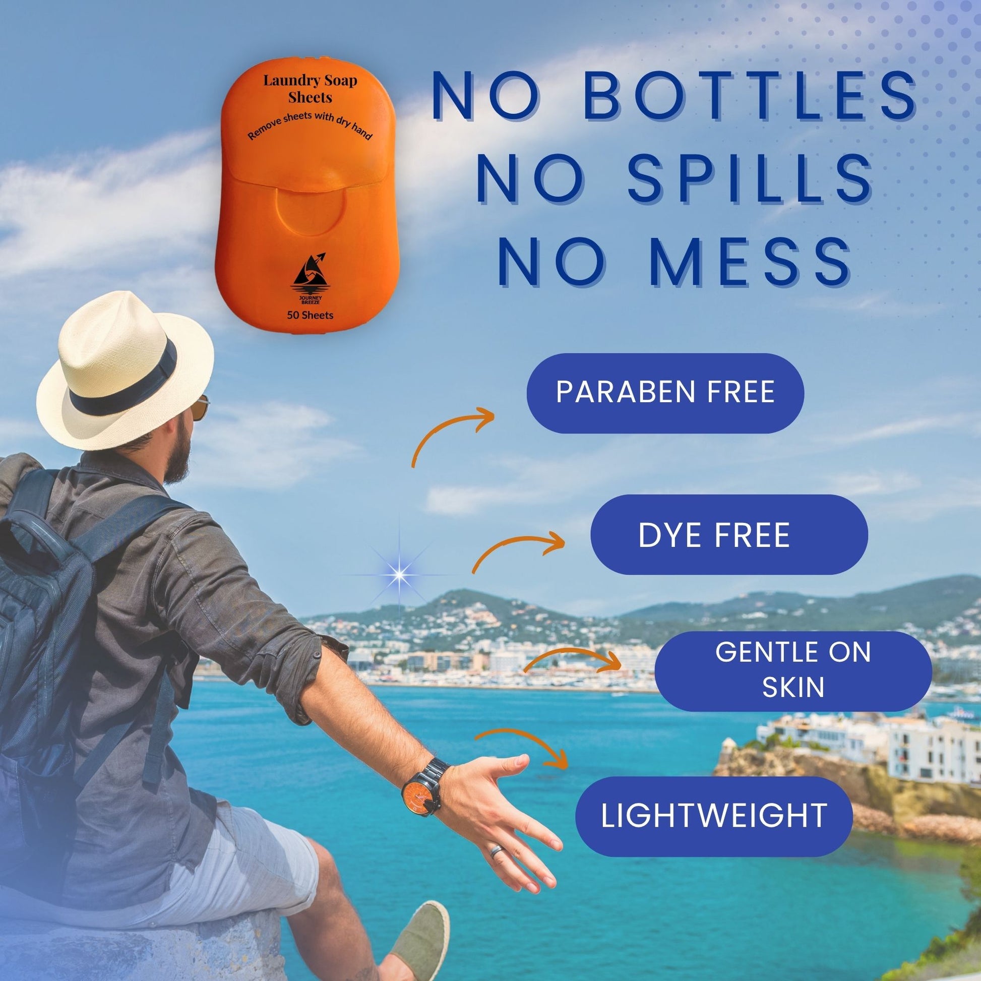 Includes 1 pack of laundry detergent sheets in a convenient resealable storage container, and 1 foldable laundry bag. Includes a pack of 50-pack detergent sheets - perfect for cruises, camping, glamping, and hotel stays so you can always have fresh clothes on the go. Also has a foldable laundry bag to keep your dirty clothes separate until they are ready to wash.
