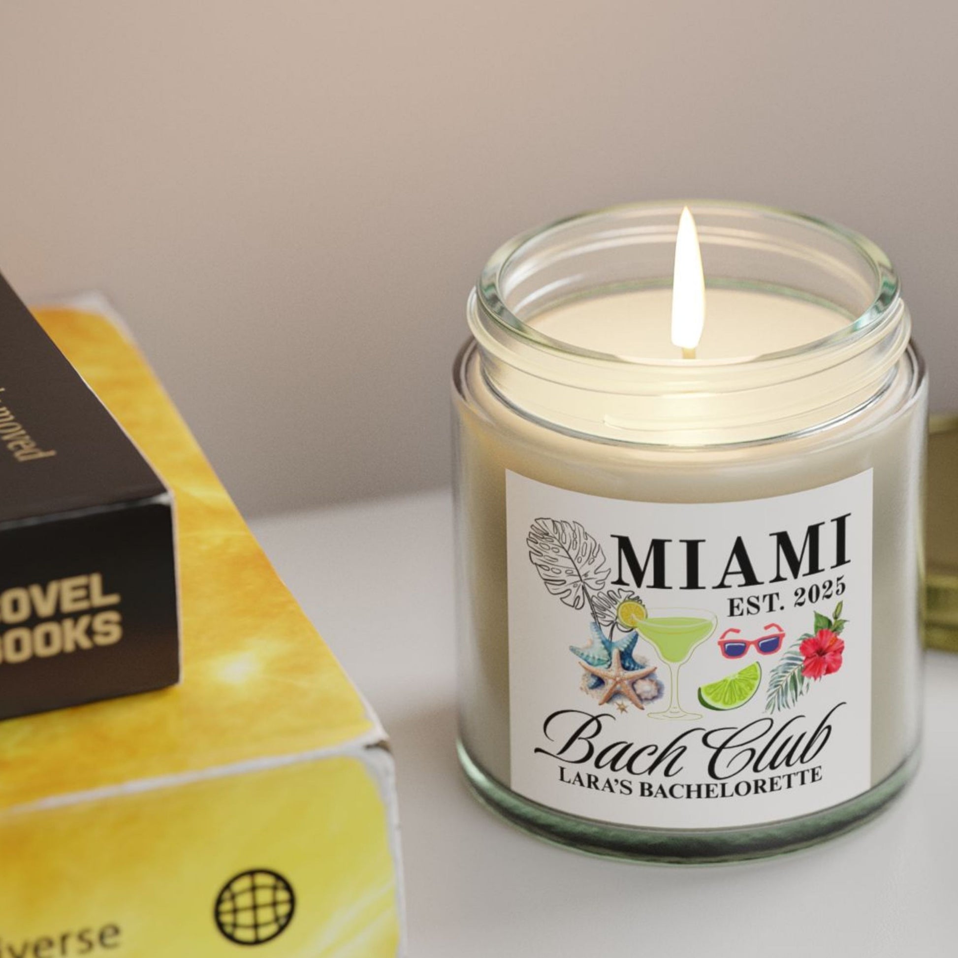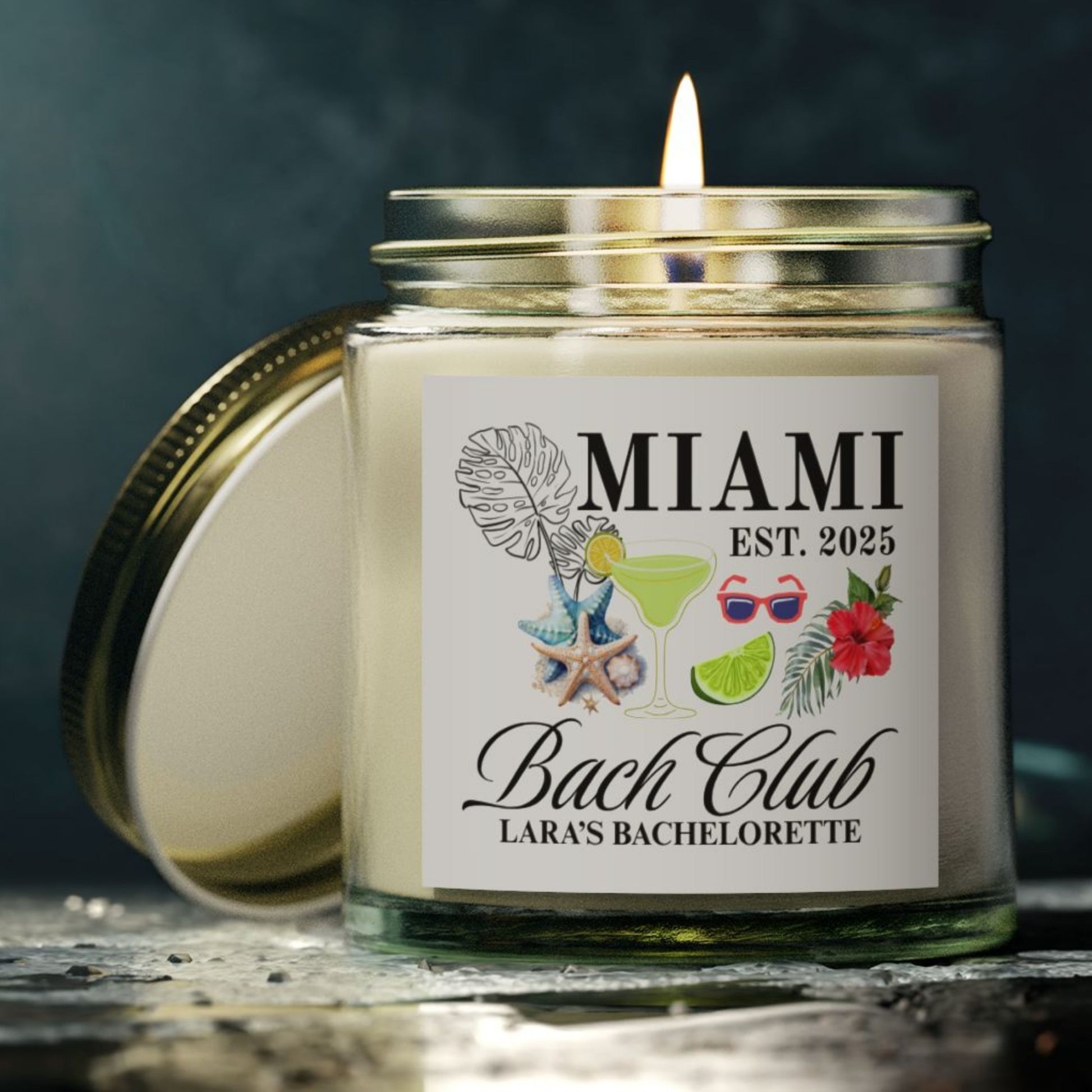 Miami Travel Candle Personalized, Coconut Apricot Wax Candle, Memories of Travel Collection, Traveler Gift Family Vacation Keepsake