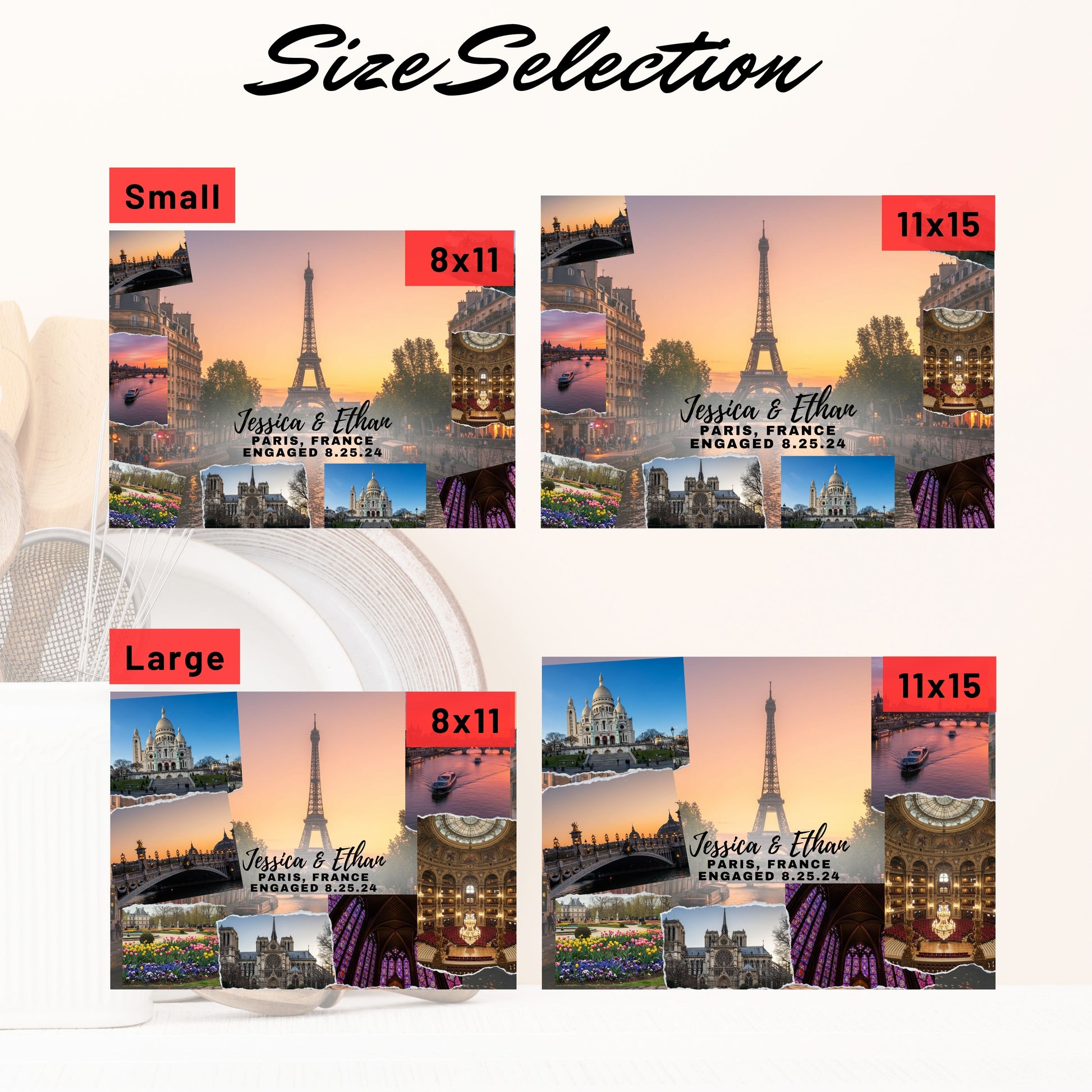 • Available in two sizes: (8″ × 11″) (20.3cm × 27.9cm) or (11″ × 15″) (27.9cm × 38.1cm)