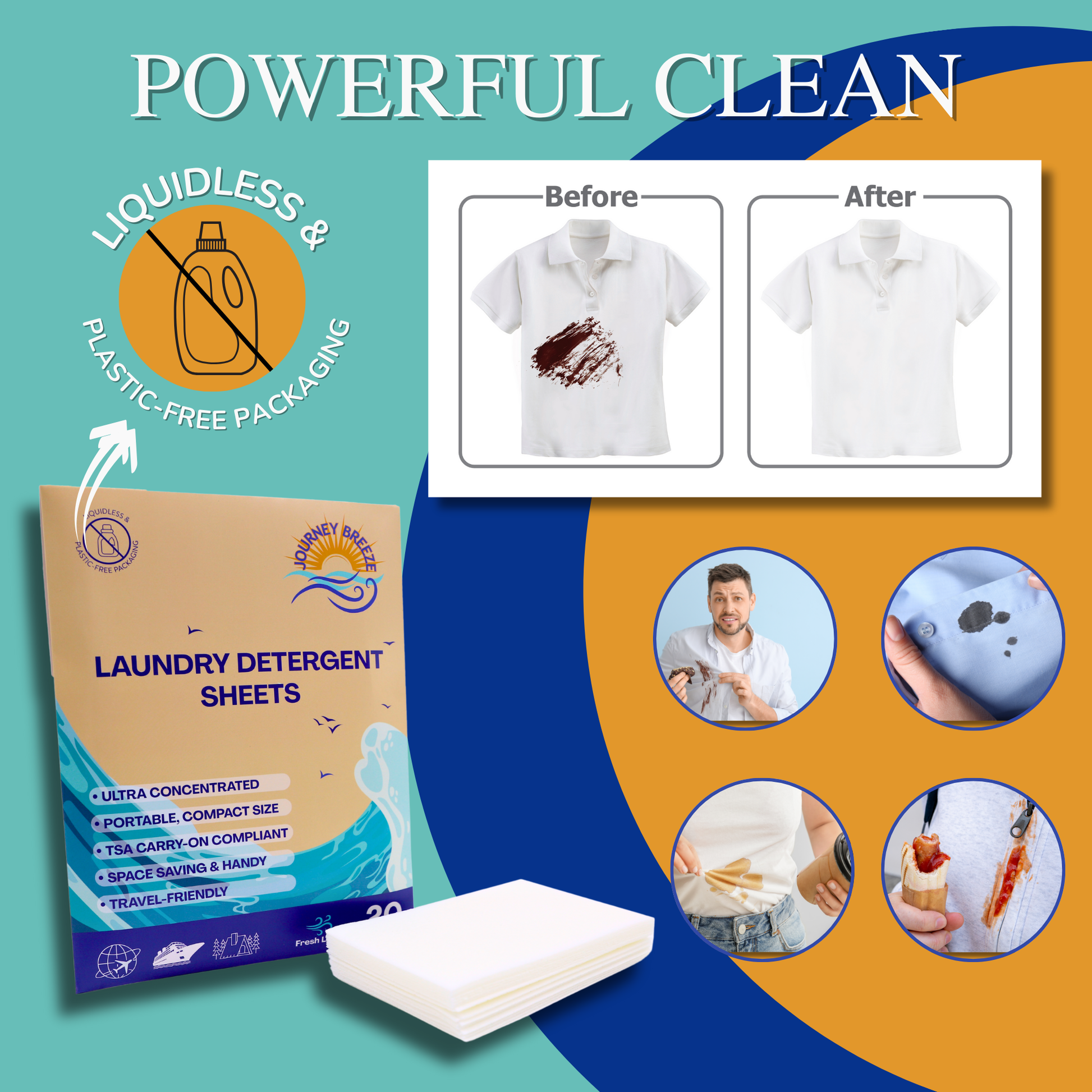 - These travel laundry detergent sheets dissolve quickly without residue, eliminating bulky liquids and spills. Lightweight and mess-free, they work as hand soap, stain remover, and laundry detergent. Perfect for trips of any length, they keep your clothes clean on the go.