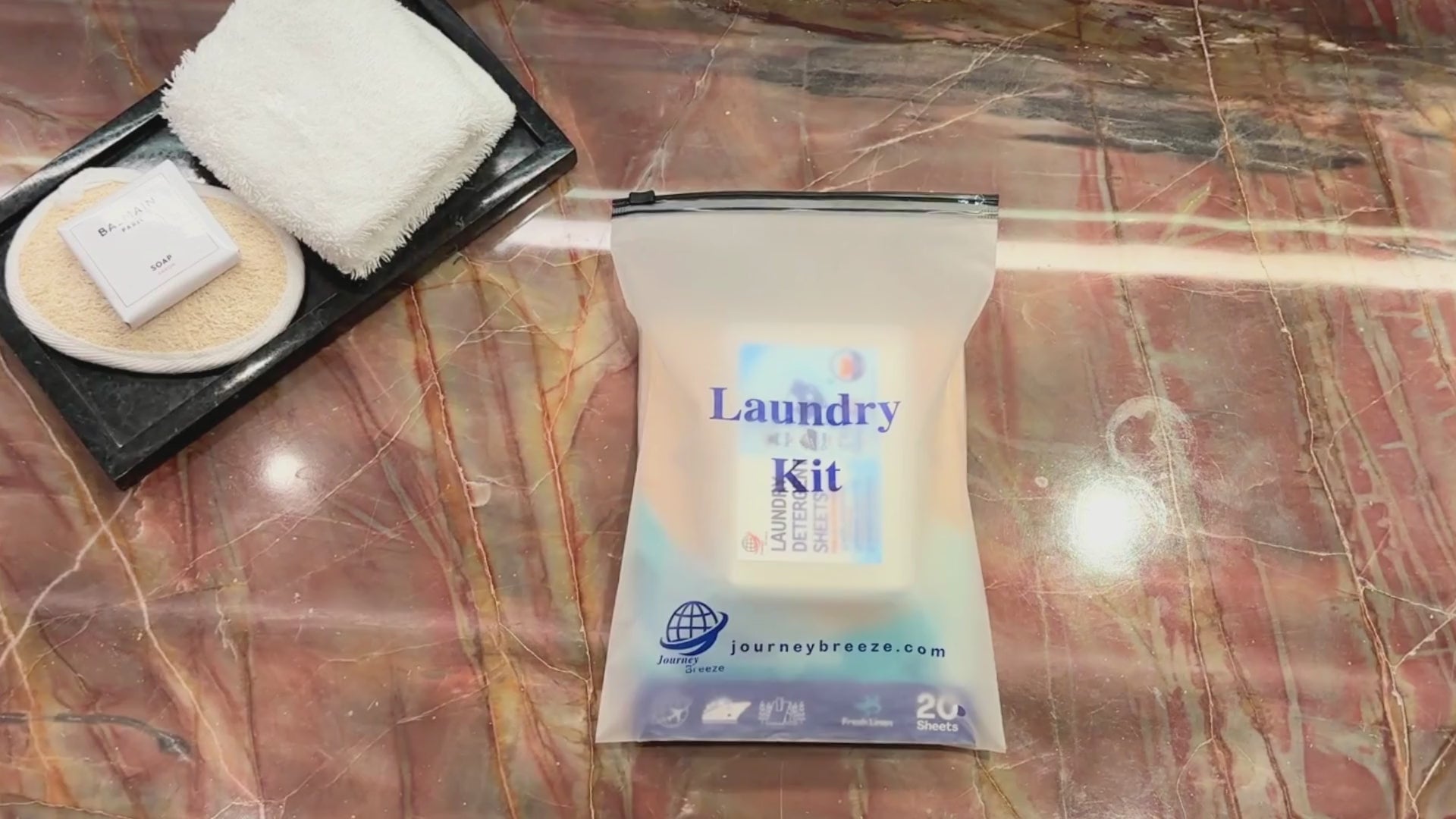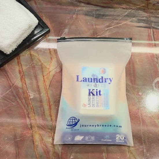 Travel Laundry Detergent Sheets that are compact, lightweight, and mess-free—designed for both hand washing and machine washing while traveling. Journey Breeze Laundry Detergent Sheets dissolve quickly in water, making them ideal for hotel sinks, washing machines, cruises, camping, backpacking, and extended trips.