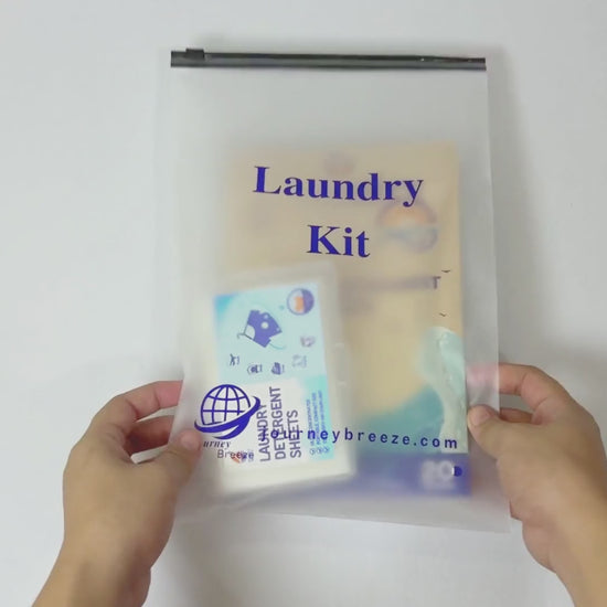 - Complete Travel Laundry Kit – Includes 30 detergent sheets in a portable case, 20-sheet refill pack, and a frosted zip pouch for mess-free storage.
