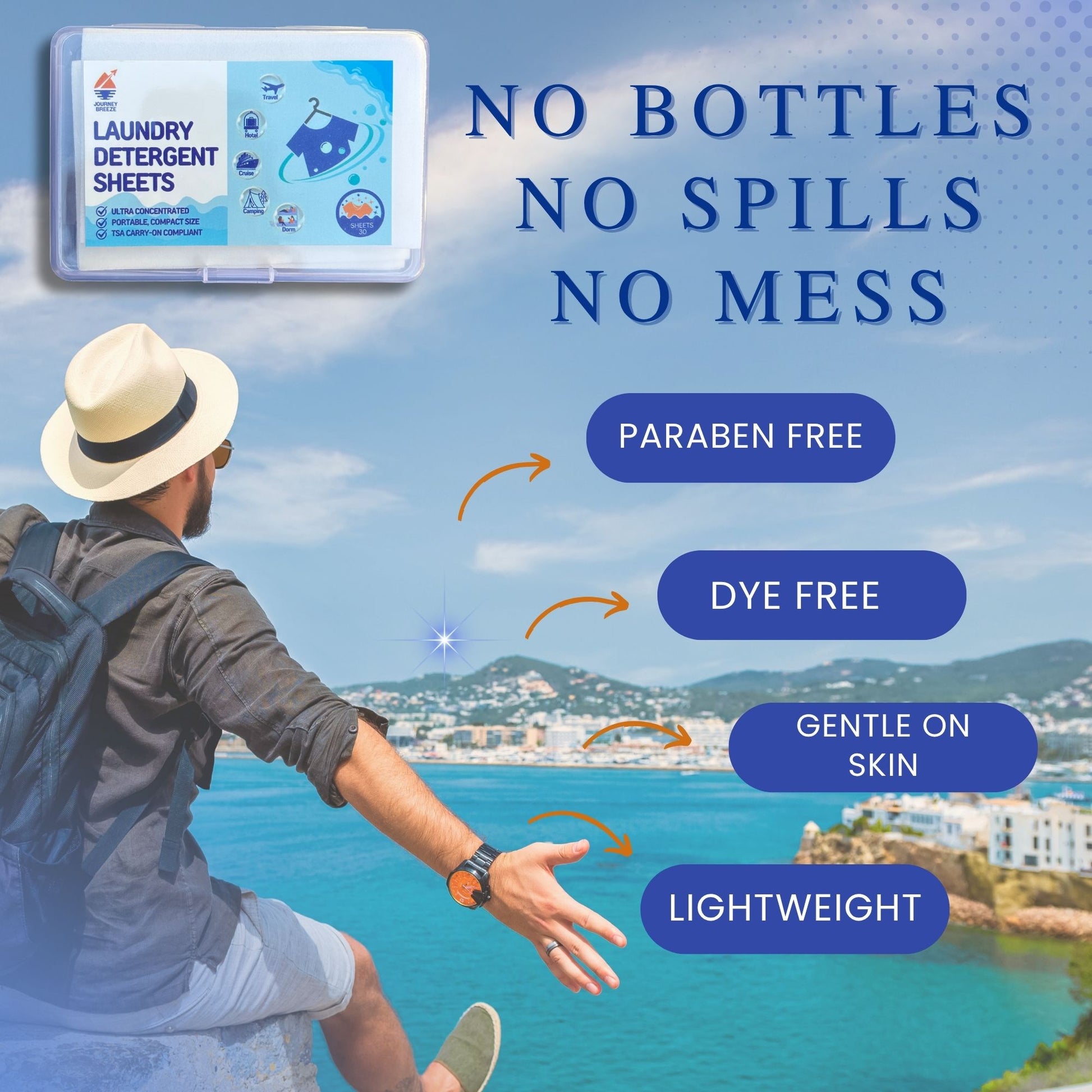 Travel Laundry Detergent Sheets Easy to Use, Both for Washing Machine & Hand-Washing - 30 Sheets