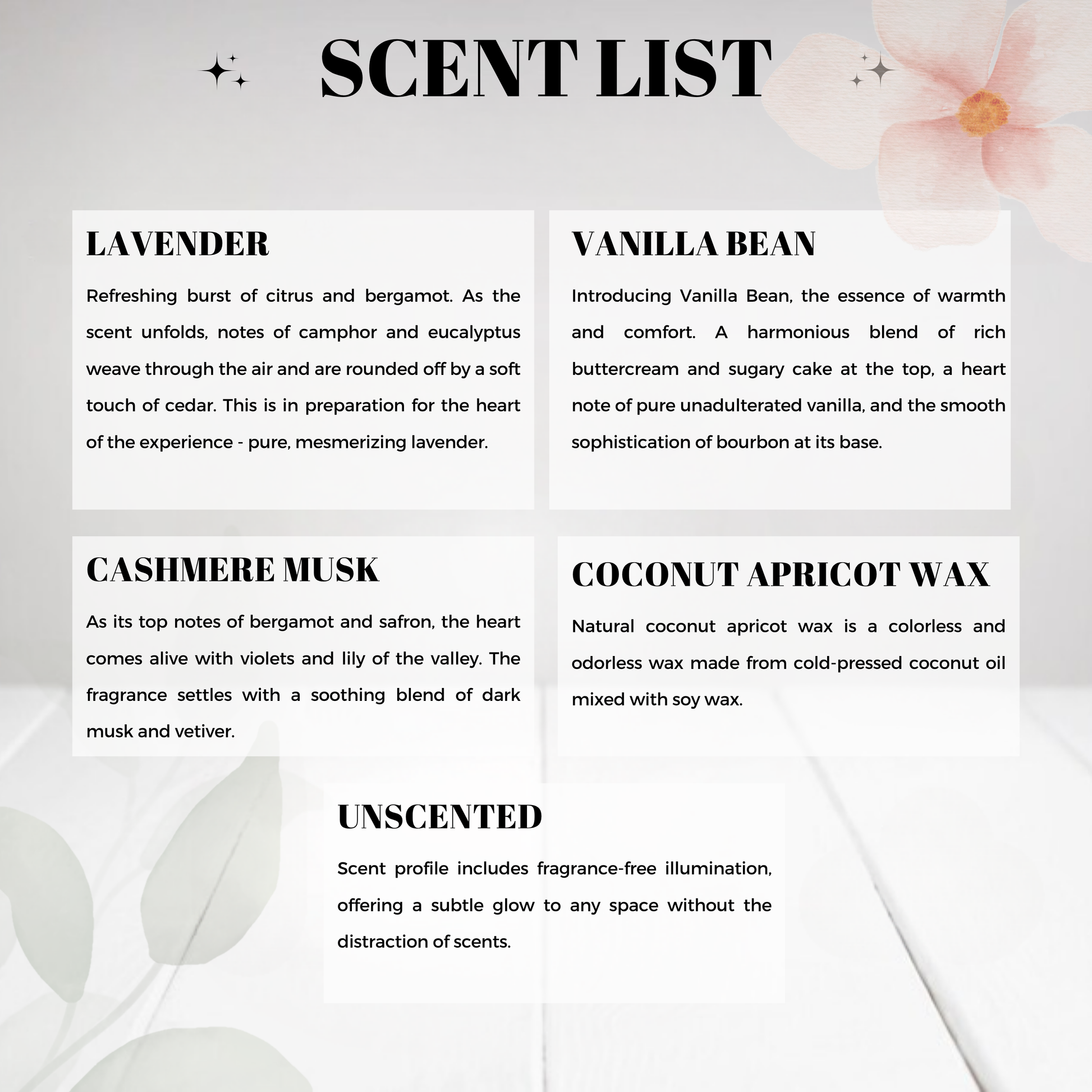 • Please note: All scents have the same natural color